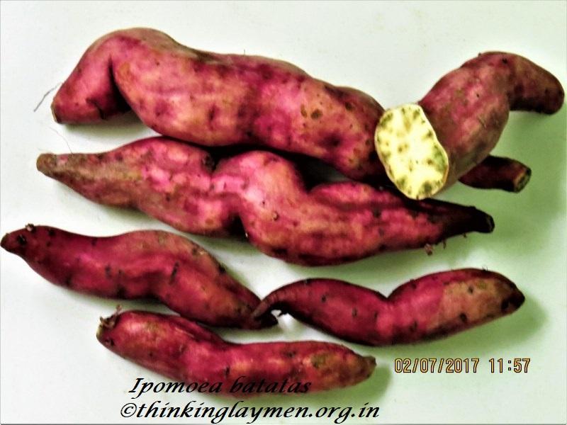 - Bengali : Not available yet | Sanskrit : Raktaluh, Sthulakanda | Hindi : Sakkar kand | Tribal : Not available yet | English : Sweet potato | Other Languages : Madhurakkilannu (Mal.) ; Sarkaraivallikizangu (Tam.) ; Genusu gadda (Tel.)